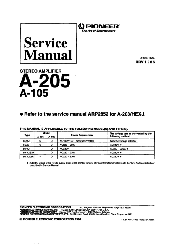 Strona główna >> PIONEER >> A105 Instrukcja Serwisowa