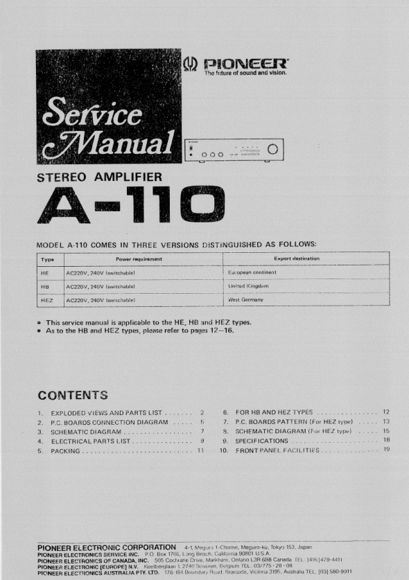 Opis PIONEER A-110 Instrukcja Serwisowa