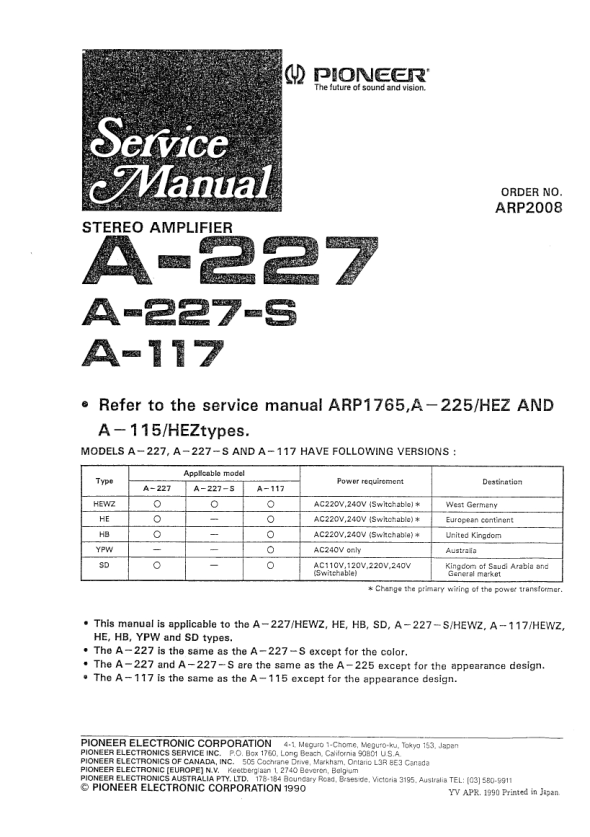 Strona główna >> PIONEER >> A-117 Instrukcja Serwisowa