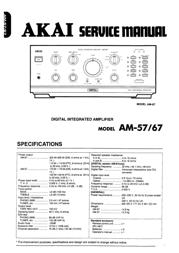 Strona główna >> AKAI >> AM57 Instrukcja Serwisowa