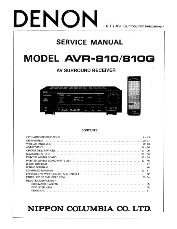 Opis DENON AVR-810 Instrukcja Serwisowa