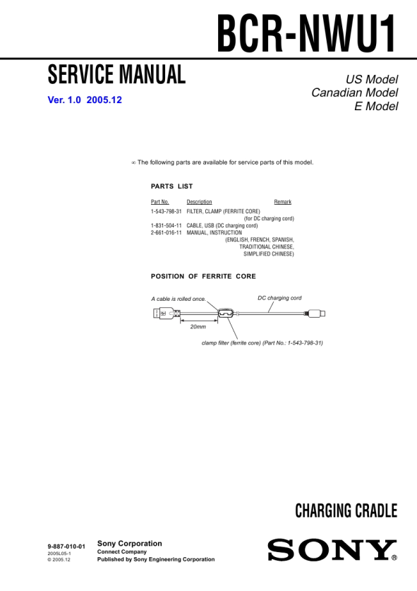 Opis SONY BCRNWU1 Instrukcja Serwisowa