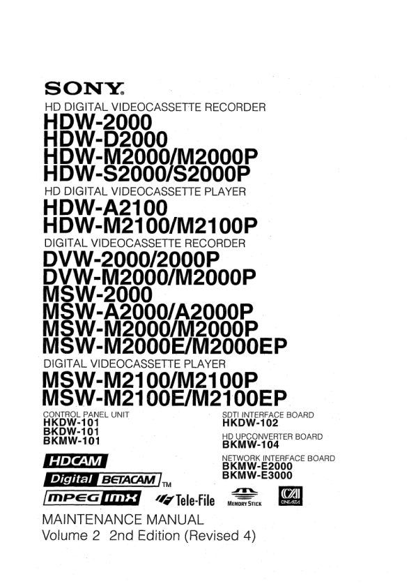 Strona główna >> SONY >> BKDW101 Instrukcja Serwisowa