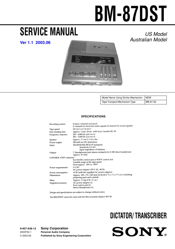 Positiv power source terminal of the microcomputer. Microcomputer operation mode selection input. (Connect to VDD). Not used (OPEN). Not used. Connect to VDD Input for clock oscillation (4.19MHz). Output for clock oscillation (4.19MHz). HU-LISTEN key input. At LISTEN key-in of the hand control unit (HU-80) : � L � At the other : � H � HU-BS key input. At BS key-in of the hand unit (HU-80) : � L � Playback control output. At LISTEN : � H � At the other : � L � At the other : � L � Amplifier mute output. At LISTEN, DICT, TEL-REC : � H � At the other : � H � Foot switch LISTEN key input. At LISTEN key-in of the foot control unit (FS-75) : � L � At the other : � H � Not used (Connect to VDD). HU-LTR key input. At LTR key-in of the hand control unit (HU-80) : � L � At the other : � H � Microcomputer reset input. Normal : � H � Not used (OPEN). At the other : � H �