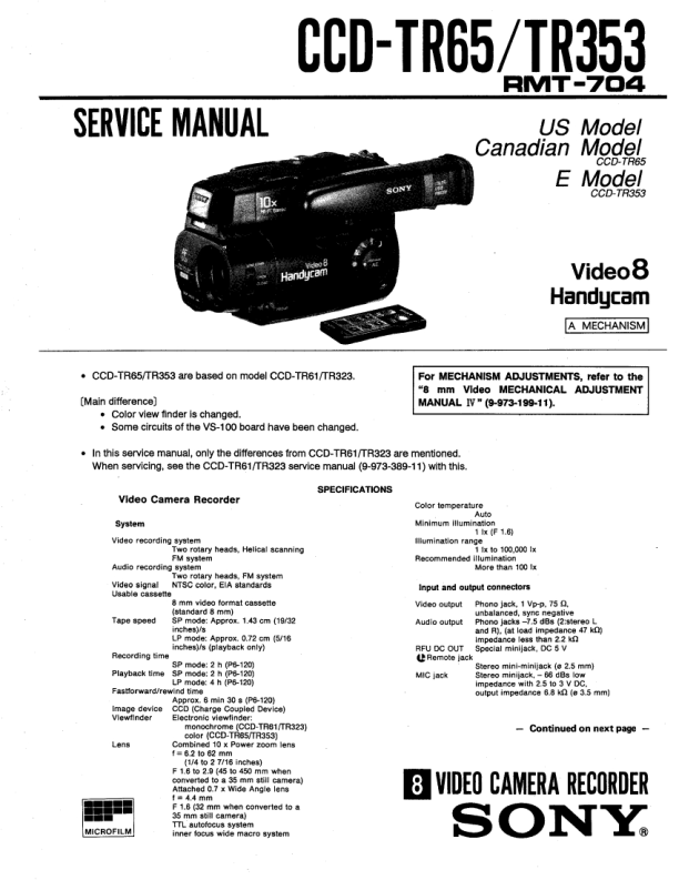 Strona główna >> SONY >> CCDTR65 Instrukcja Serwisowa