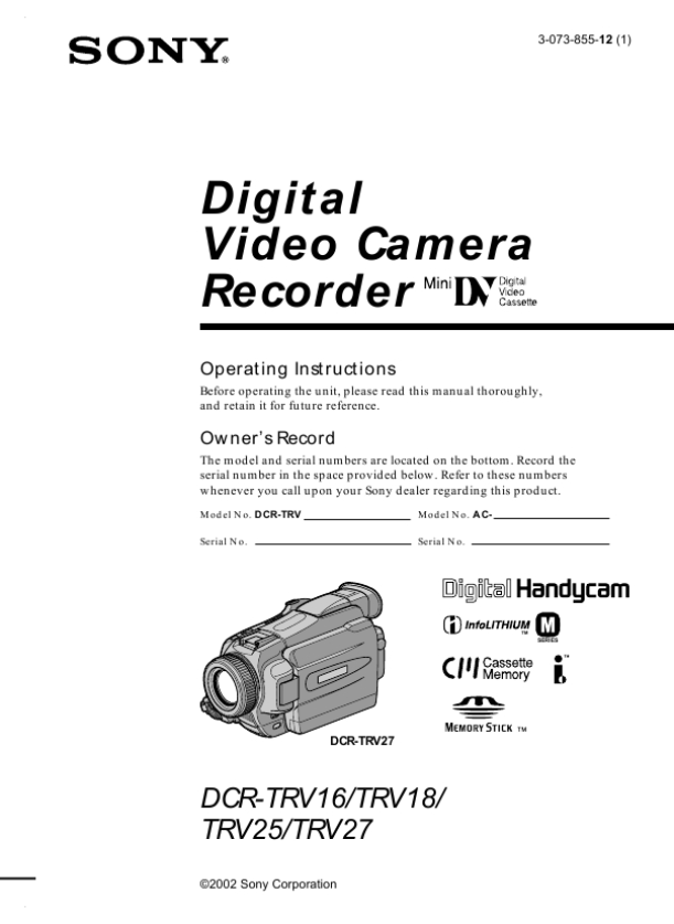 Opis SONY CCD-TRV25 Instrukcja Obsługi