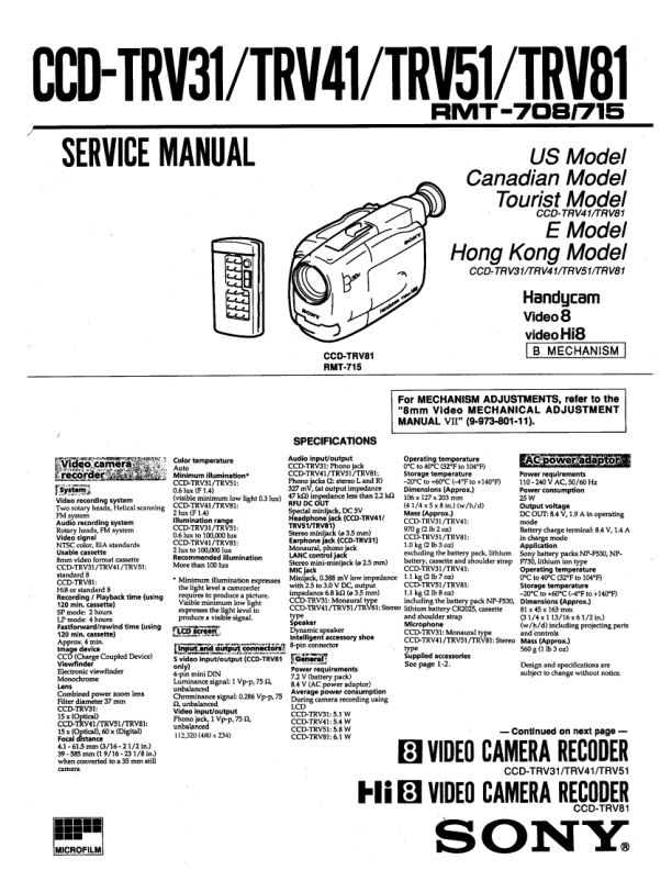 Opis SONY CCDTRV41 Instrukcja Serwisowa