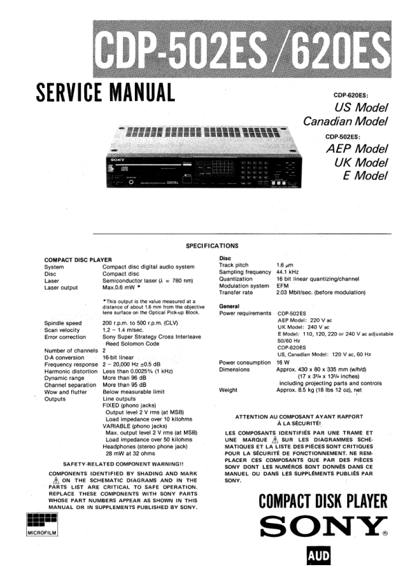 Opis SONY CDP502ES Instrukcja Serwisowa
