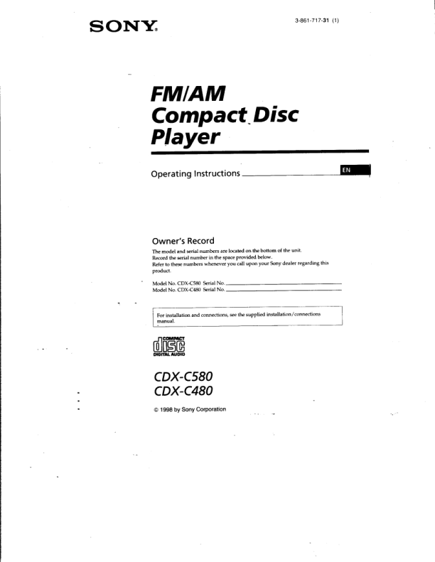 Opis SONY CDX-C580 Instrukcja Obsługi