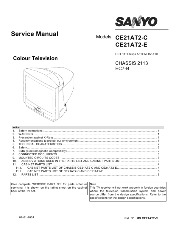 Read this page before doing any operation of adjustment, maintenance or repair the TV set described. Only skilled personnel of Sanyo Technical Service should do the adjustment, maintenance or repair of TV set.
