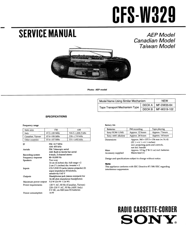 Opis SONY CES-W329 Instrukcja Serwisowa
