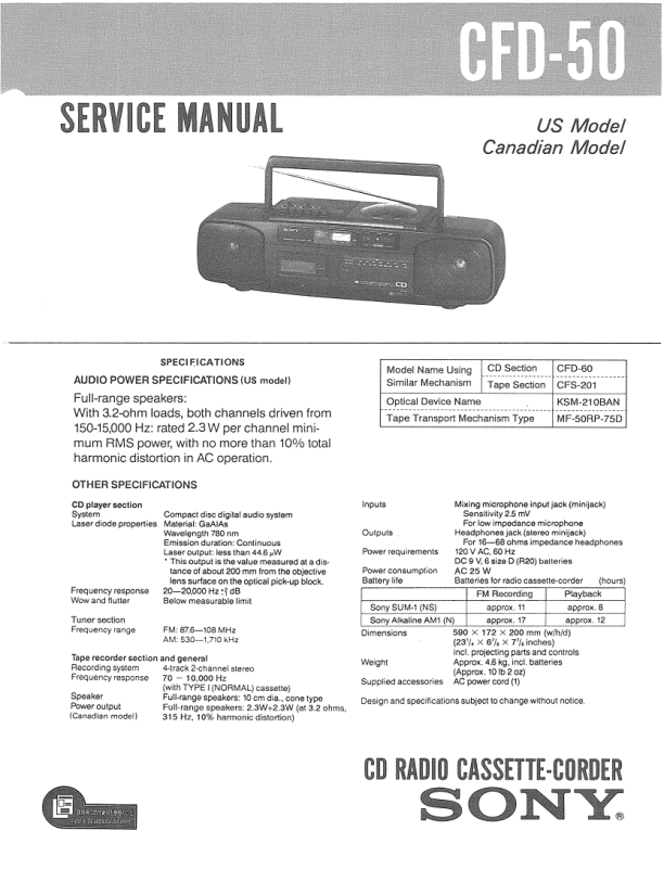 Strona główna >> SONY >> CFD50 Instrukcja Serwisowa