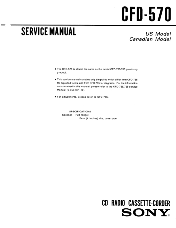 Opis SONY CFD-570 Instrukcja Serwisowa
