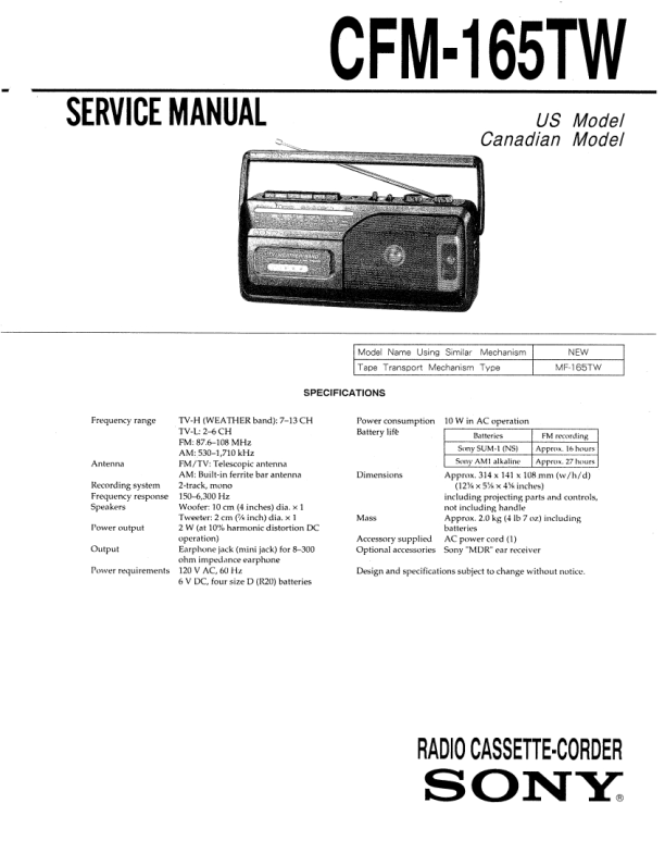 Opis SONY CFM-165TW Instrukcja Serwisowa