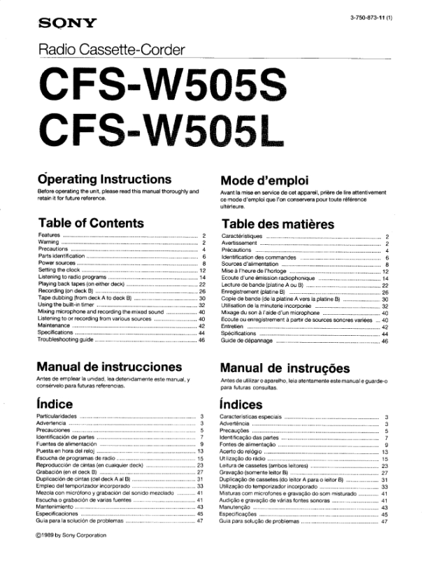 Opis SONY CFS-W505S Instrukcja Obsługi