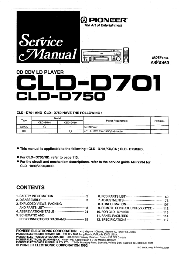 Opis PIONEER CLDD701 Instrukcja Serwisowa