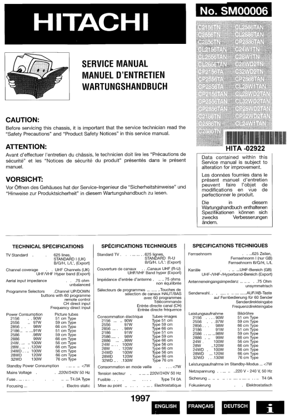 Strona główna >> HITACHI >> CP32WD2TAN Instrukcja Serwisowa