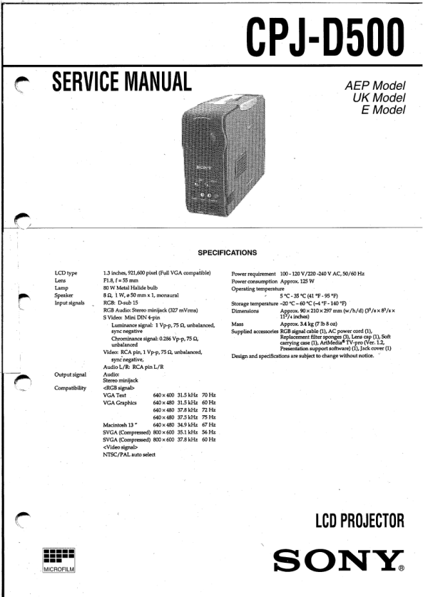 Opis SONY CPJD500 Instrukcja Serwisowa