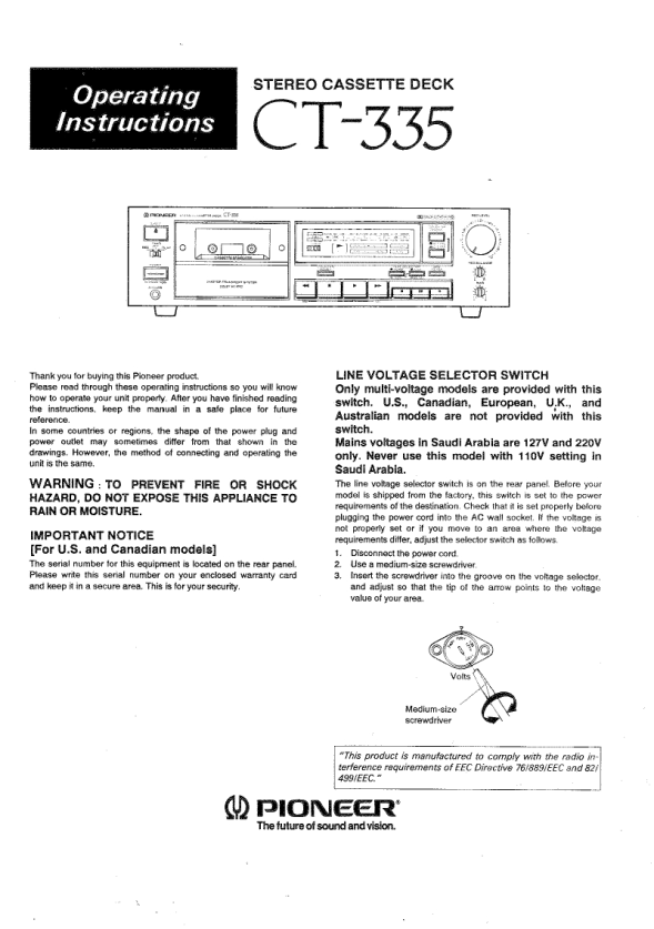 Opis PIONEER CT-335 Instrukcja Obsługi