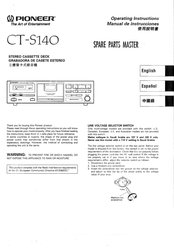 Opis PIONEER CT-S140 Instrukcja Obsługi