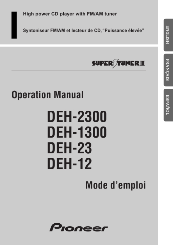 Opis PIONEER DEH-23 Instrukcja Obsługi