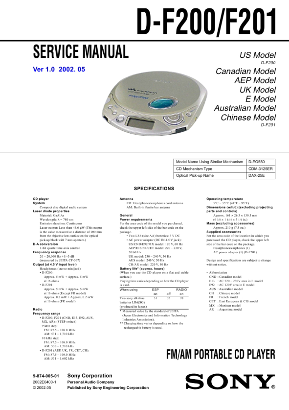 D-F200/F201 SECTION 1 SERVICE NOTE