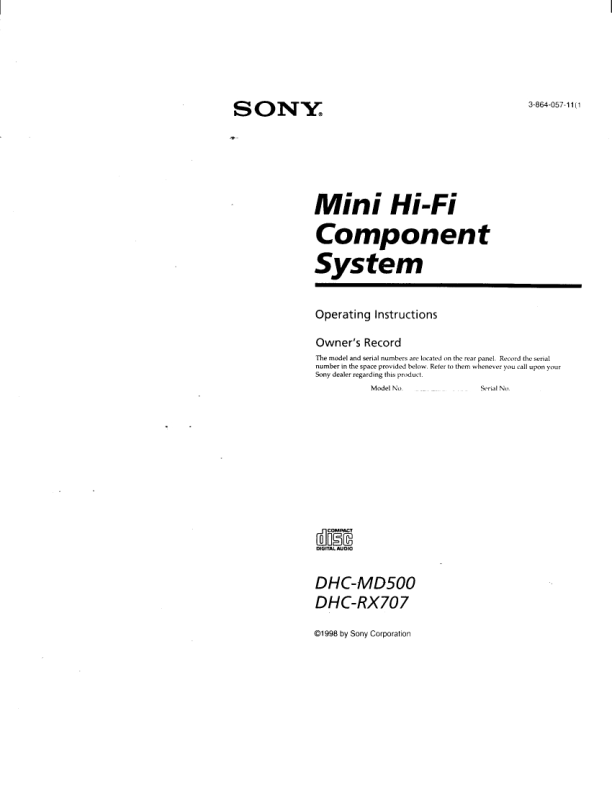 Opis SONY DHC-MD500 Instrukcja Obsługi