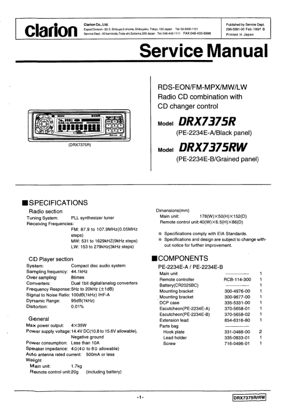 Opis CLARION DRX7375R/RW Instrukcja Serwisowa