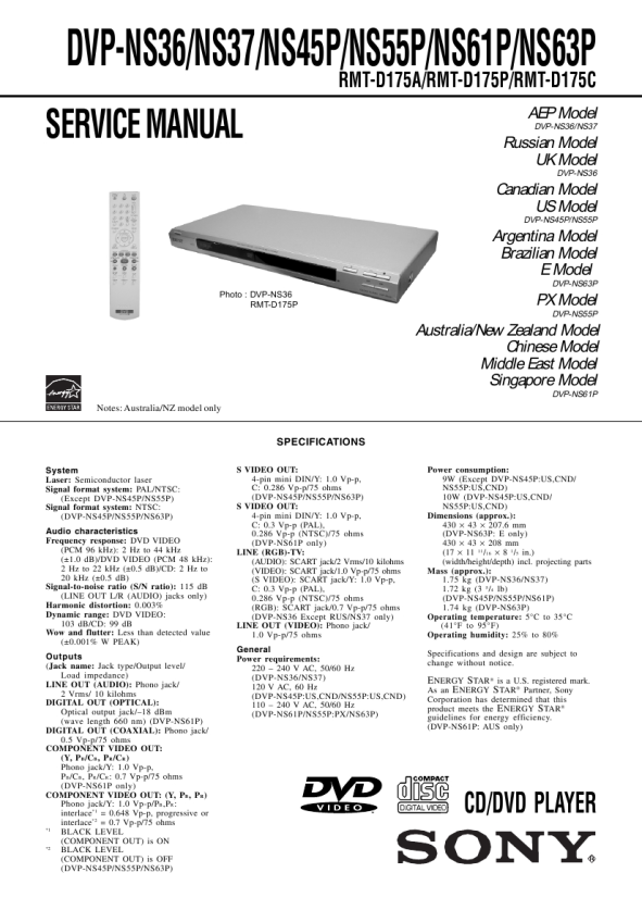 DVP-NS36/NS37/NS45P/NS55P/NS61P/NS63P