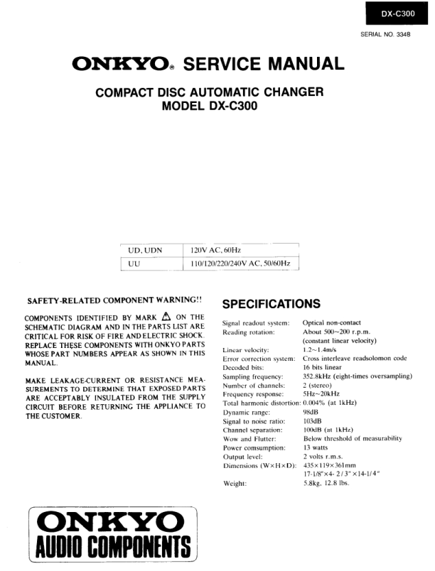 Opis ONKYO DXC300 Instrukcja Serwisowa