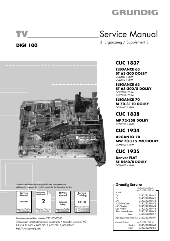 Es gelten die Vorschriften und Sicherheitshinweise gemä� dem Service Manual "Sicherheit", Mat.-Nummer 720108000000, sowie zusätzlich die eventuell abweichenden, landesspezifischen Vorschriften!