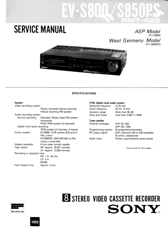 Strona główna >> SONY >> EVS850PS Instrukcja Serwisowa