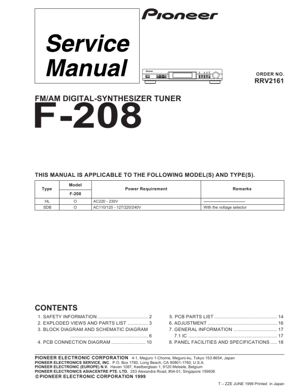 3. The parts mounted on this PCB include all necessary parts for several destination. For further information for respective destinations, be sure to check with the schematic diagram.