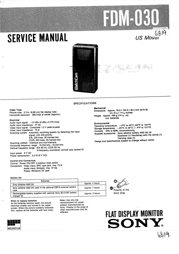Opis SONY FDM-030 Instrukcja Serwisowa