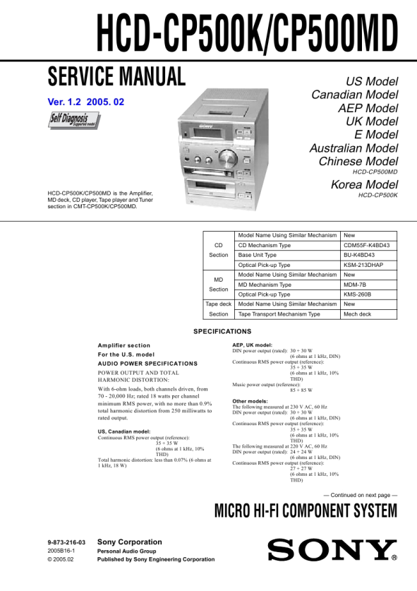 HCD-CP500K/CP500MD