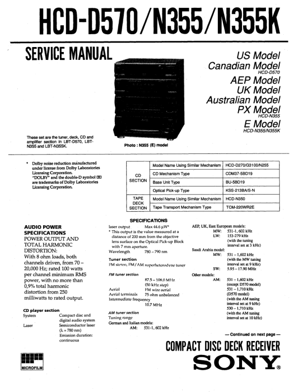 Opis SONY HCDD570 Instrukcja Serwisowa
