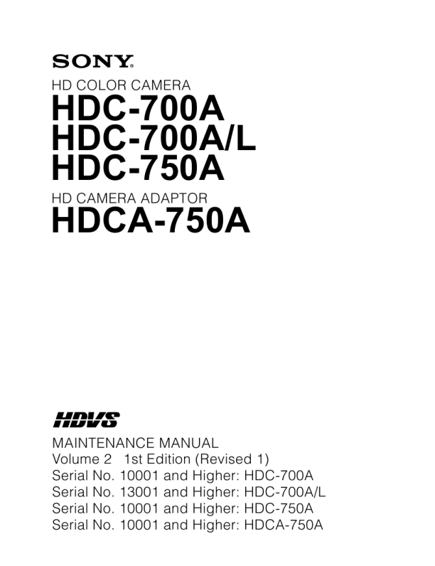 Opis SONY HDC-700A/L Instrukcja Serwisowa