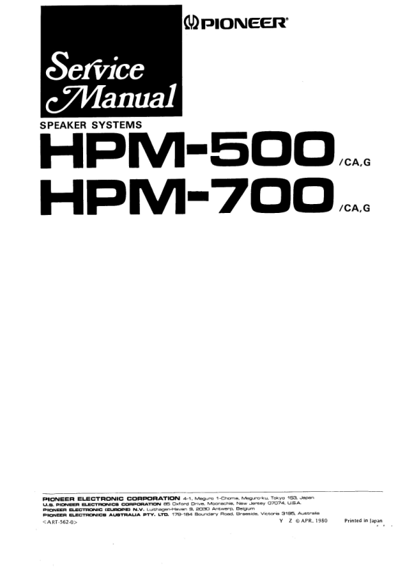Opis PIONEER HPM-500 Instrukcja Serwisowa