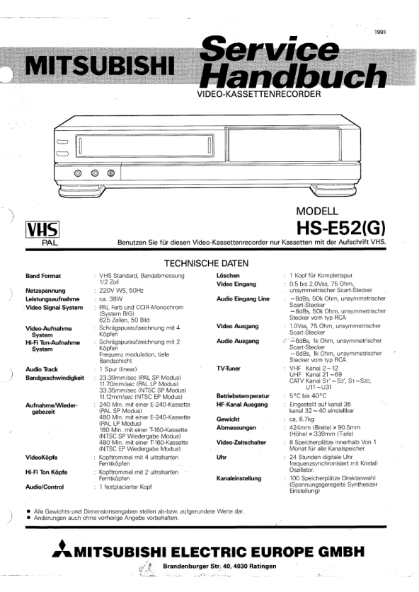 Opis MITSUBISHI HSE52/G Instrukcja Serwisowa
