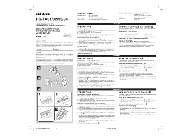 Set the TAPE/AM/FM switch to TAPE to turn off the power after listening. For better reception G FM: The headphone cord functions as the FM antenna. Keep it extended. AM: Turn the unit to find the position which gives the best reception.