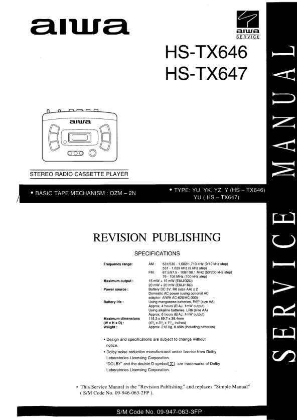 DX666 AIWA Instrukcja Serwisowa by Adam Grążka;