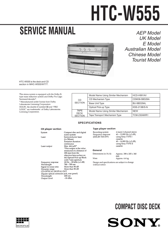 Strona główna >> SONY >> HTCW555 Instrukcja Serwisowa