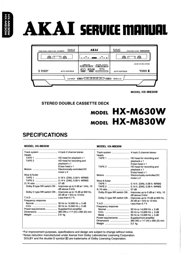 Strona główna >> AKAI >> HX-M630W Instrukcja Serwisowa