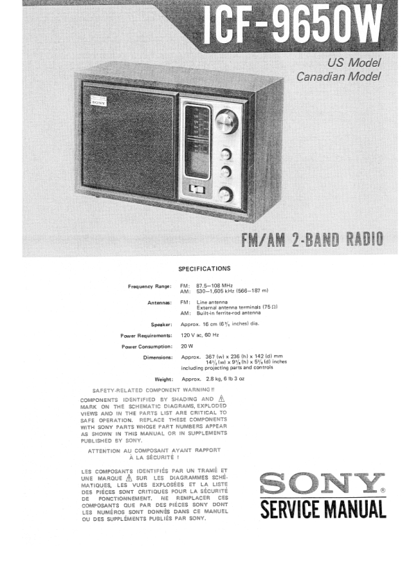 Opis SONY ICF-9650W Instrukcja Serwisowa