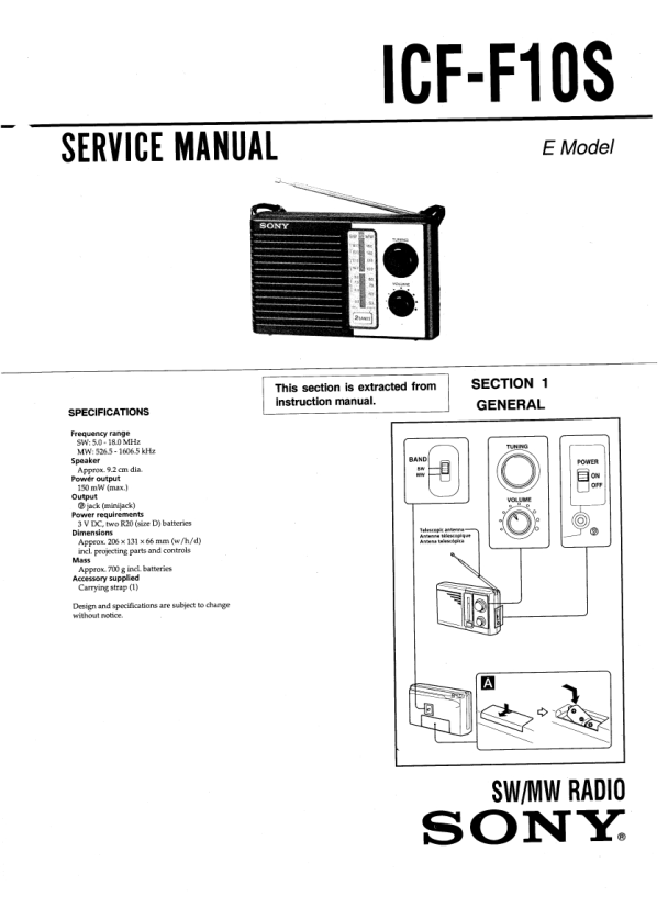 Opis SONY ICF-F10S Instrukcja Serwisowa
