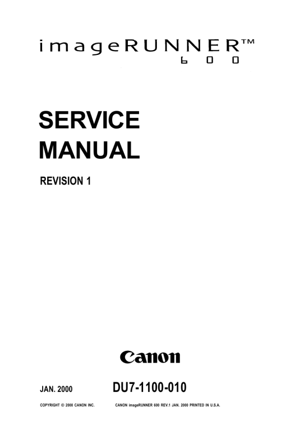 CANON imageRUNNER 600 REV.1 JAN. 2000 PRINTED IN U.S.A.