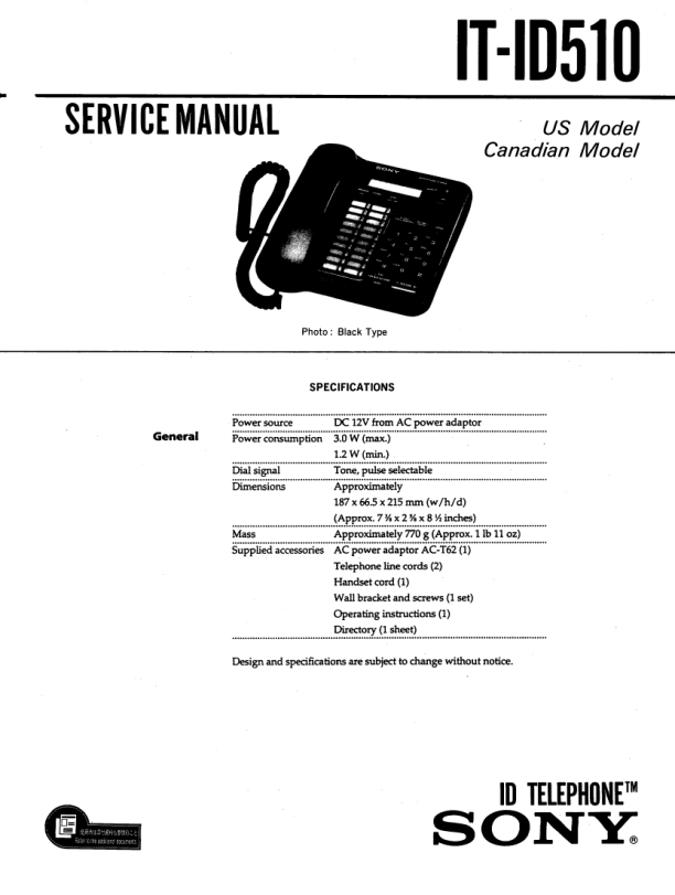 Strona główna >> SONY >> ITID510 Instrukcja Serwisowa