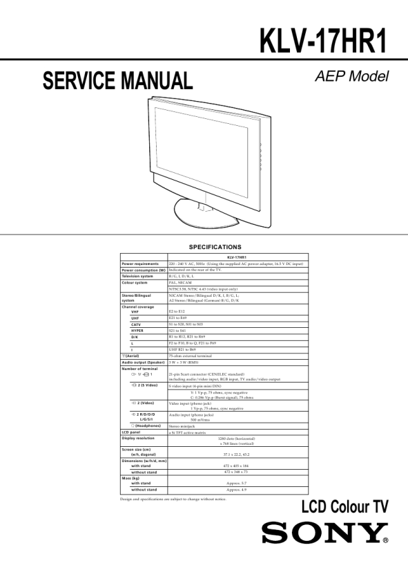 WARNING!! SAFETY-RELATED COMPONENT WARNING!! COMPONENTS IDENTIFIED BY SHADING AND MARK ! ON THE SCHEMATIC DIAGRAMS, EXPLODED VIEWS AND IN THE PARTS LIST ARE CRITICAL FOR SAFE OPERATION. REPLACE THESE COMPONENTS WITH SONY PARTS WHOSE PART NUMBERS APPEAR AS SHOWN IN THIS MANUAL OR IN SUPPLEMENTS PUBLISHED BY SONY. CIRCUIT ADJUSTMENTS THAT ARE CRITICAL FOR SAFE OPERATION ARE IDENTIFIED IN THIS MANUAL. FOLLOW THESE PROCEDURES WHENEVER CRITICAL COMPONENTS ARE REPLACED OR IMPROPER OPERATION IS SUSPECTED.