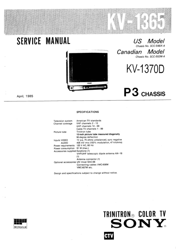 Strona główna >> SONY >> KV1365 Instrukcja Serwisowa