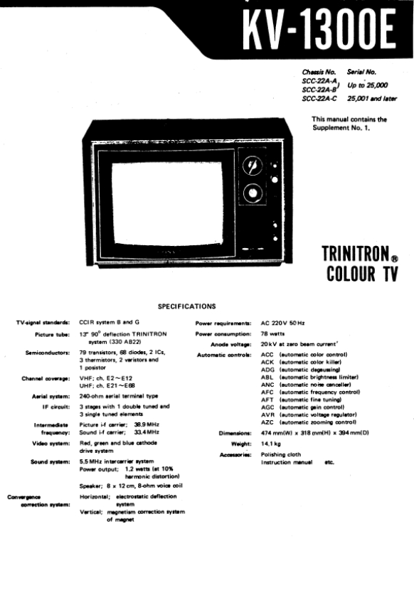 Strona główna >> SONY >> KV1822E Instrukcja Serwisowa